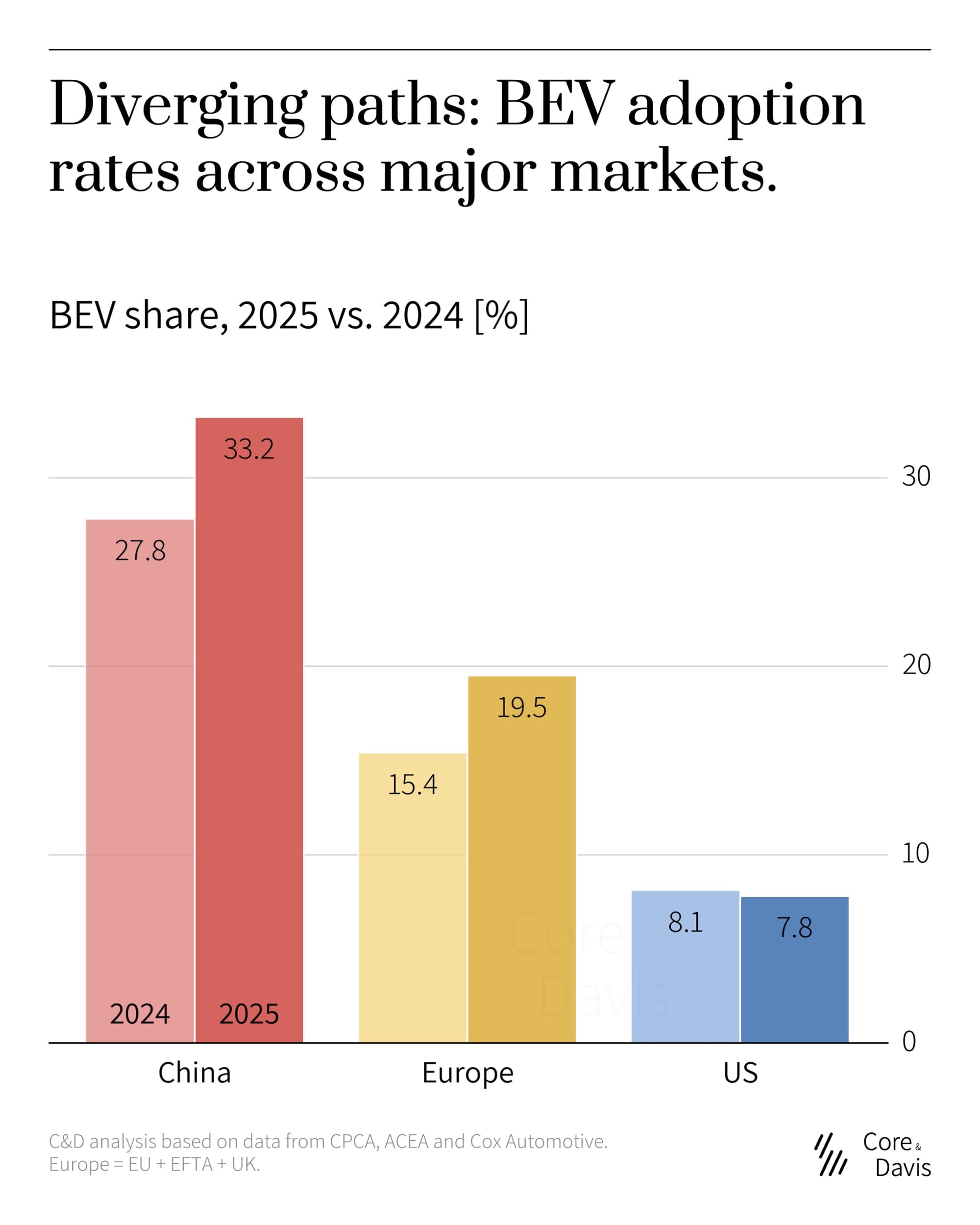 π¨π³ China keeps pulling ahead, with one in three new cars now fully electric.